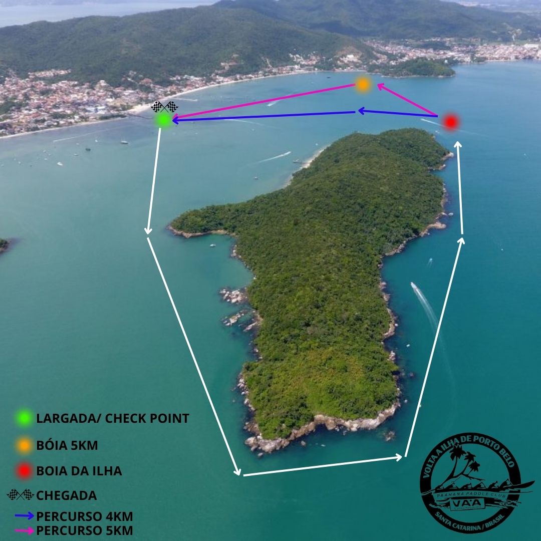 O percurso contorna a Ilha de Porto Belo, oferecendo vistas deslumbrantes da costa catarinense. SUP e Proneboard disputam 4km e 8km. As demais modalidades disputam 5km (volta completa) e 10km (duas voltas completas).